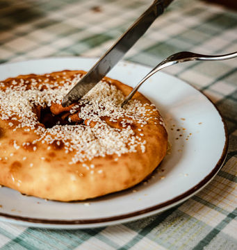 Το Λάδι που χρησιμοποιείται στις σαλάτες και τα φαγητά είναι παρθένο ελαιόλαδο.